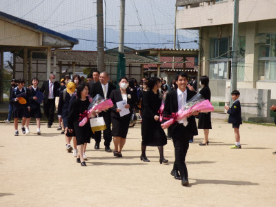 教室で担任の先生と最後の時間を過ごした後、4・5年生と教職員でお見送りをしました👋