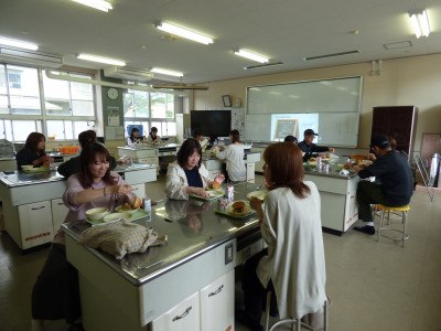 次に、神戸小学校で実際に食べている給食の試食を行いました。