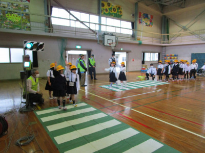 どのようにして信号、横断歩道を渡るのかしっかりと聞いて、渡る練習をしました。